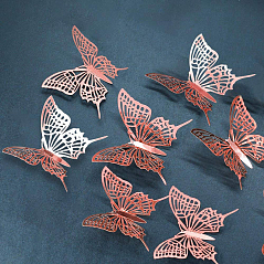 Наклейки Бабочки № 10 бумага металлик 12 шт розовое золото Наклейки Бабочки № 10 бумага металлик 12 шт розовое золото