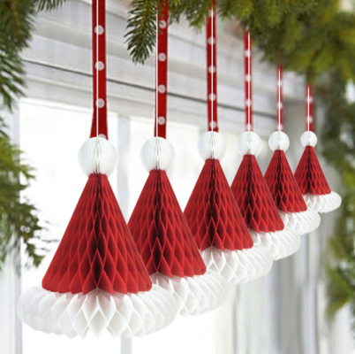 Подвесное бумажное украшение, сотовые шапки Деда Мороза.