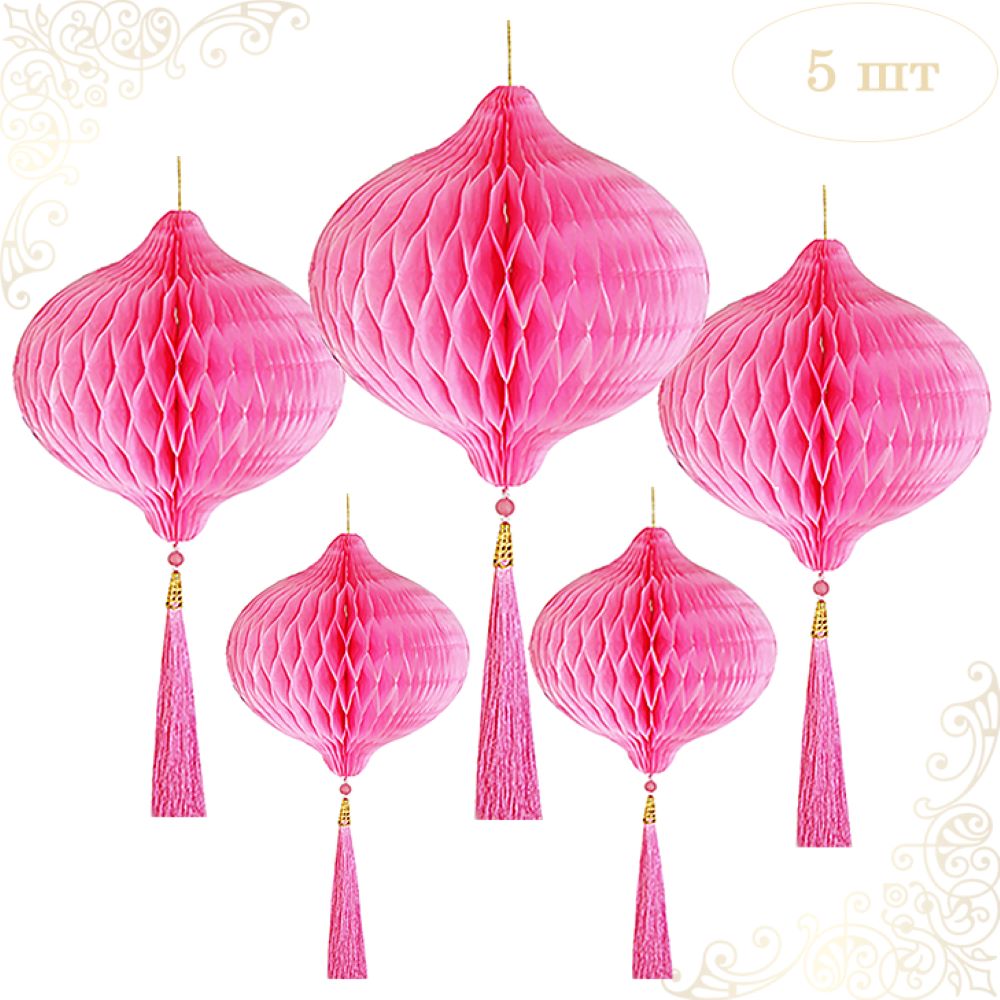 НАБОР бумажное украшение Шары-соты с кисточкой, розовый - 5шт: