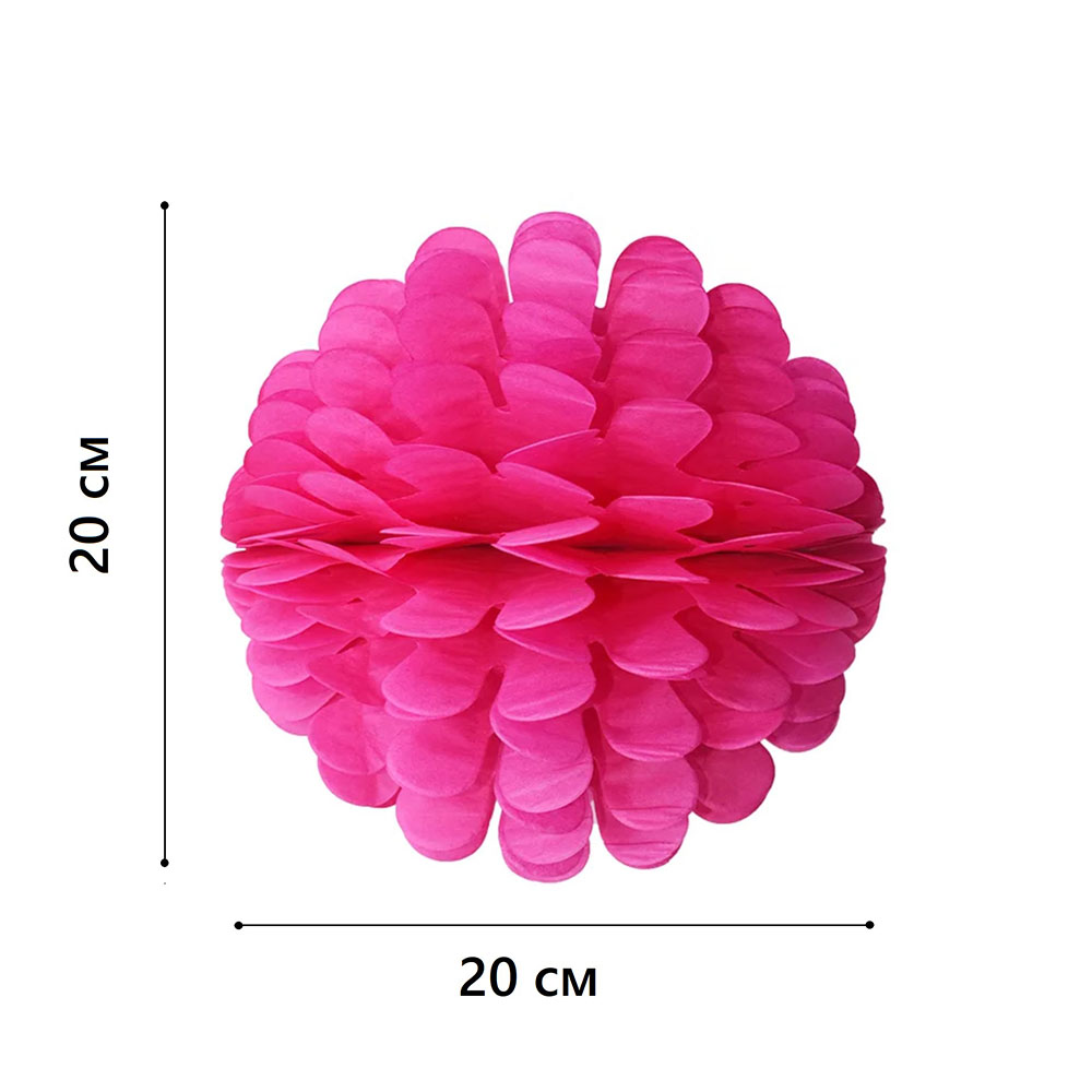 Бумажное украшение Цветочный шар-соты 20 см, малиновый