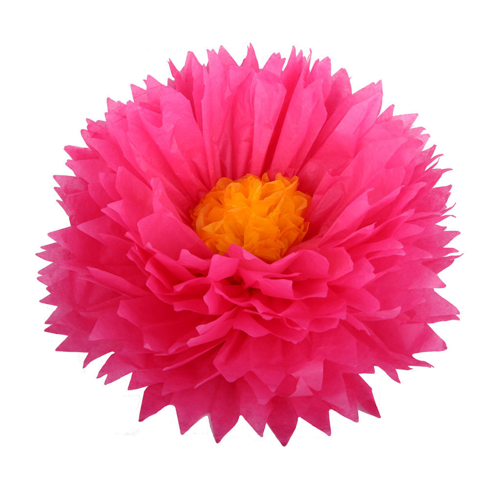 Бумажный цветок 30 см амарантовый+ярко-желтый
