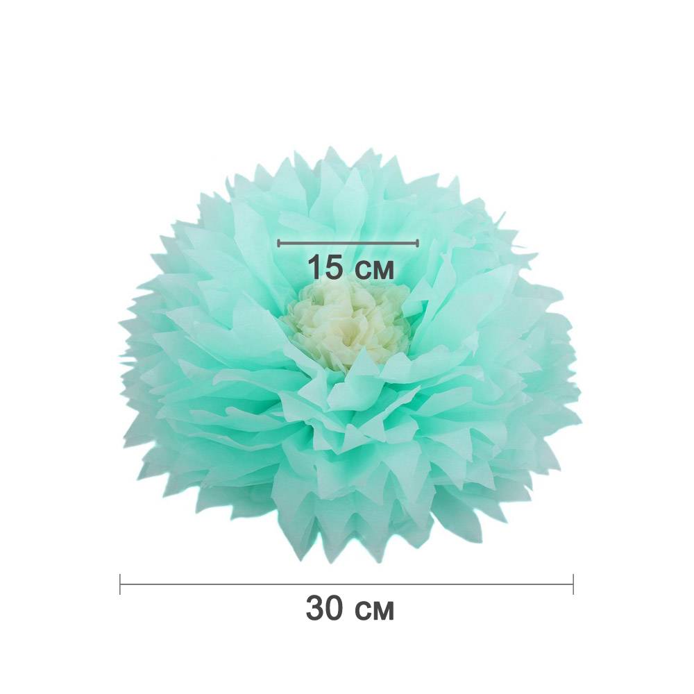 Бумажный цветок 30 см мятный+айвори