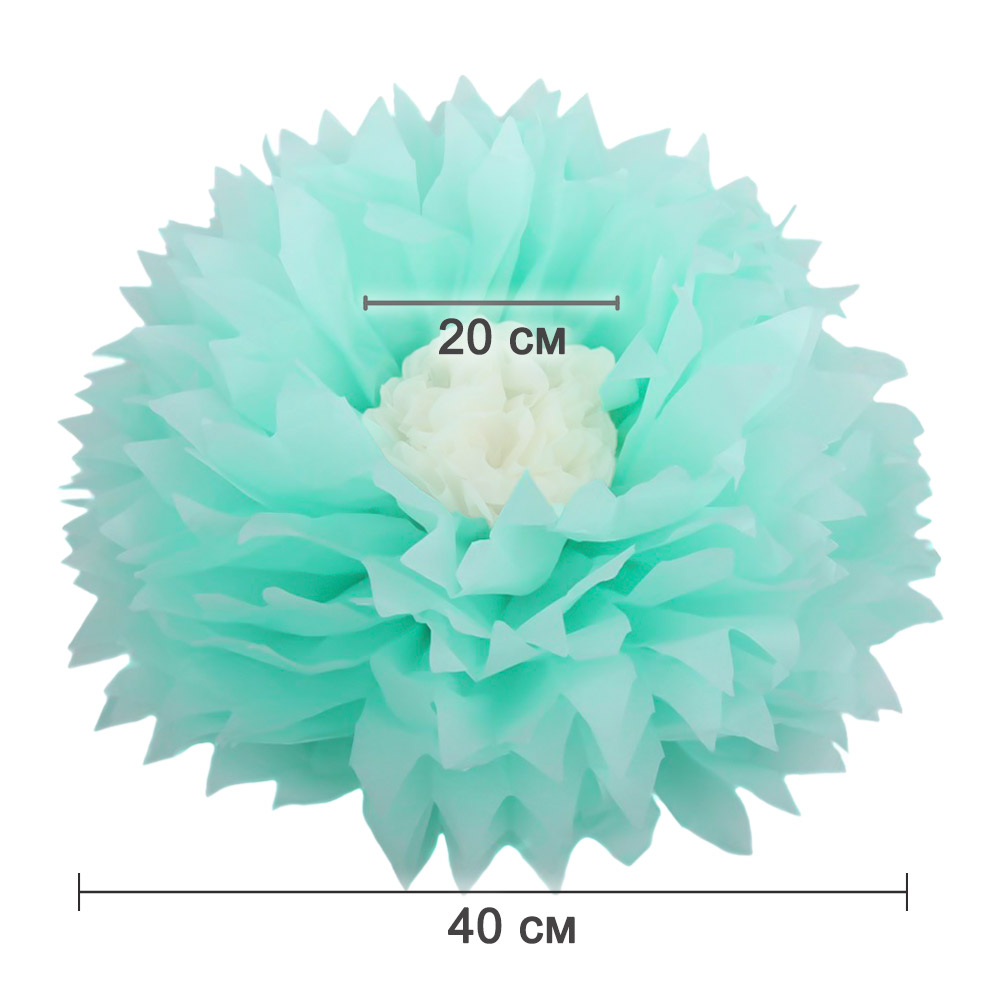 Бумажный цветок 40 см мятный+белый