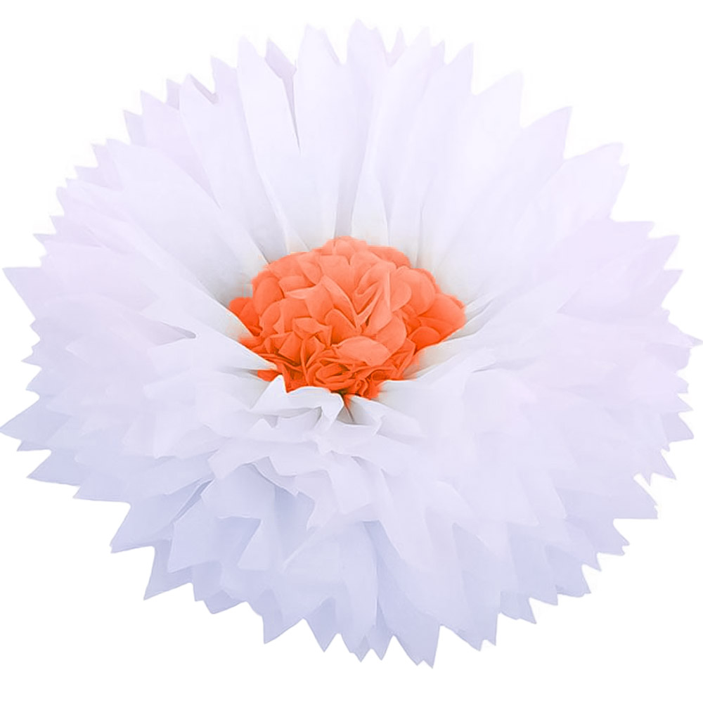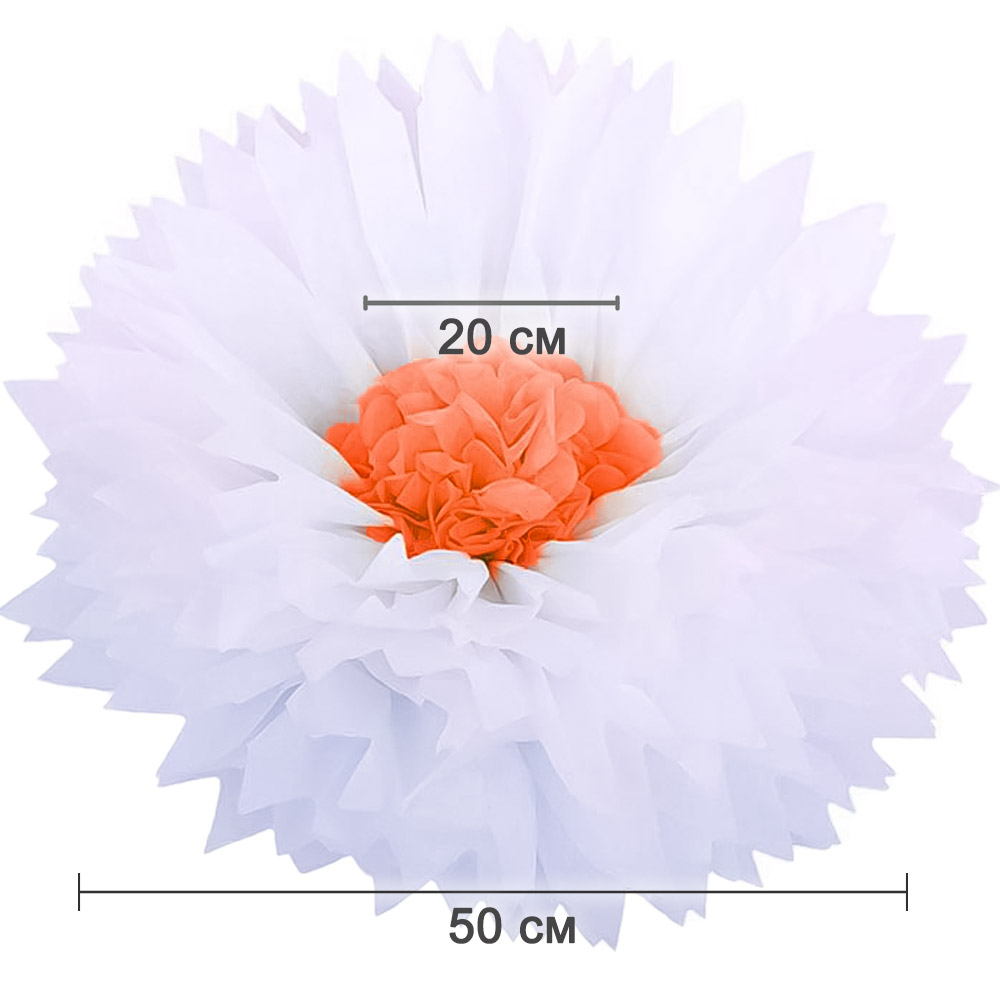 Бумажный цветок 50 см белый+оранжевый