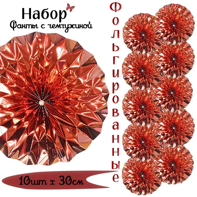 Фанты фольгированные с жемчужиной НАБОР 10шт х 30см, розовое золото