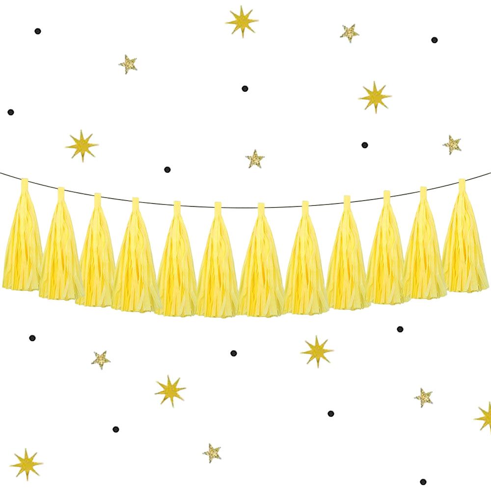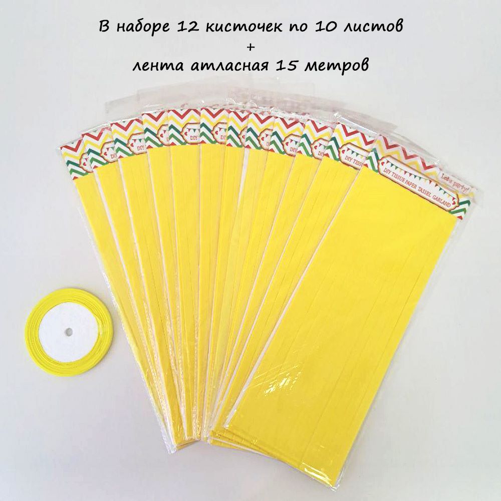 Гирлянда тассел 12 кисточек по 10 листов, желтый