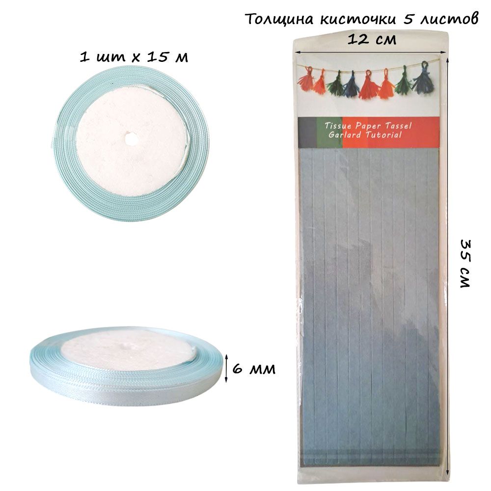 Гирлянда тассел 12 кисточек по 5 листов, серый