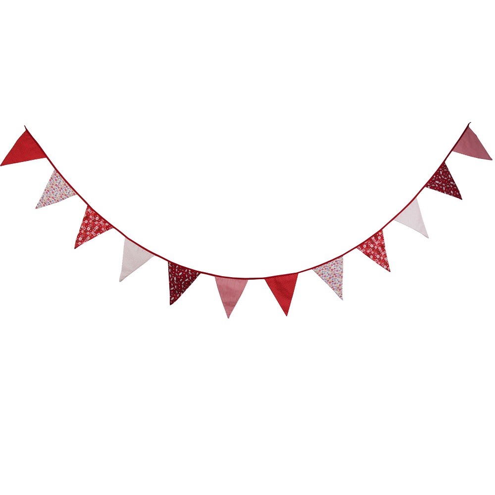 Гирлянда состоит из 12 флажков. Расстояние между флажками - 6 см, общая длина составляет 4 м.