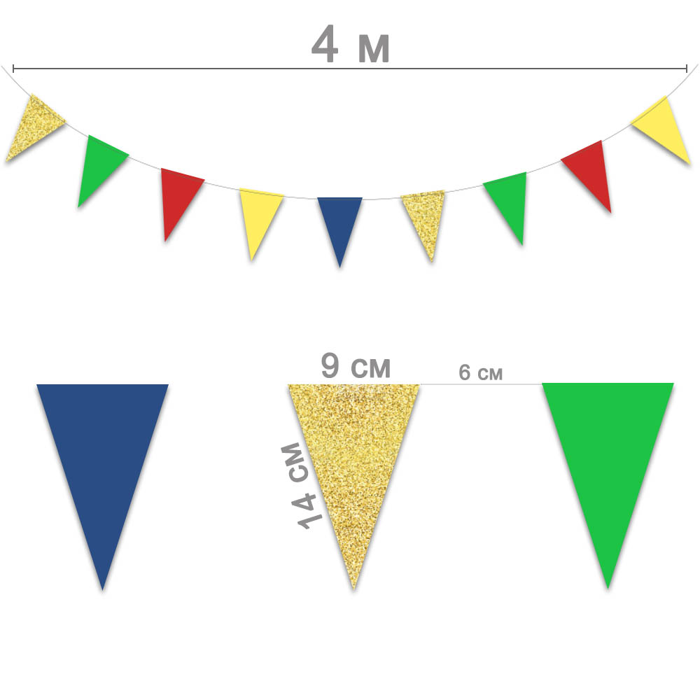Гирлянда-вымпел 9 х 14 см красн.+желт.+зол.+зел.+син. 4 м