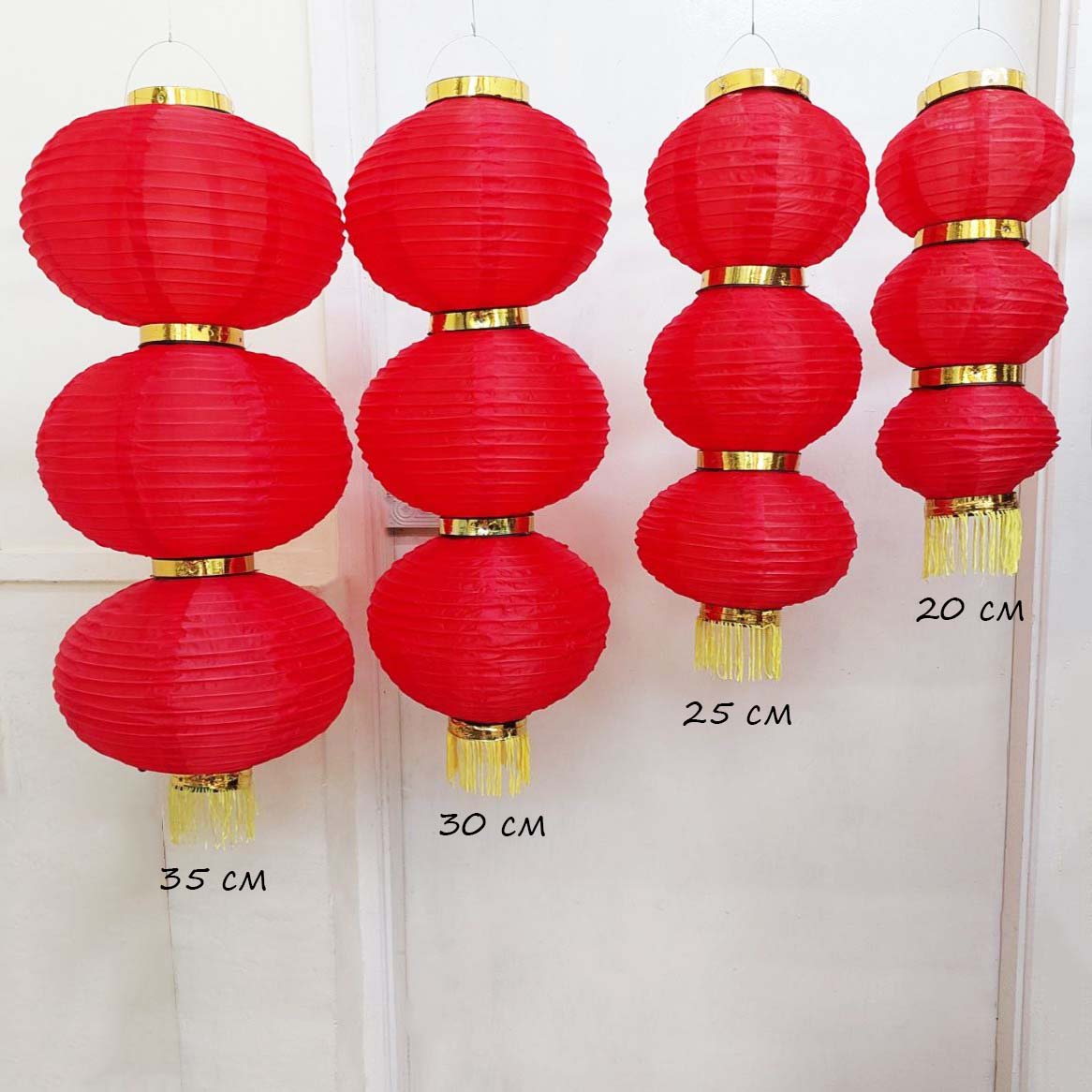 Круглый китайский фонарь состоит из трех ярусов диаметром 20 см каждый.