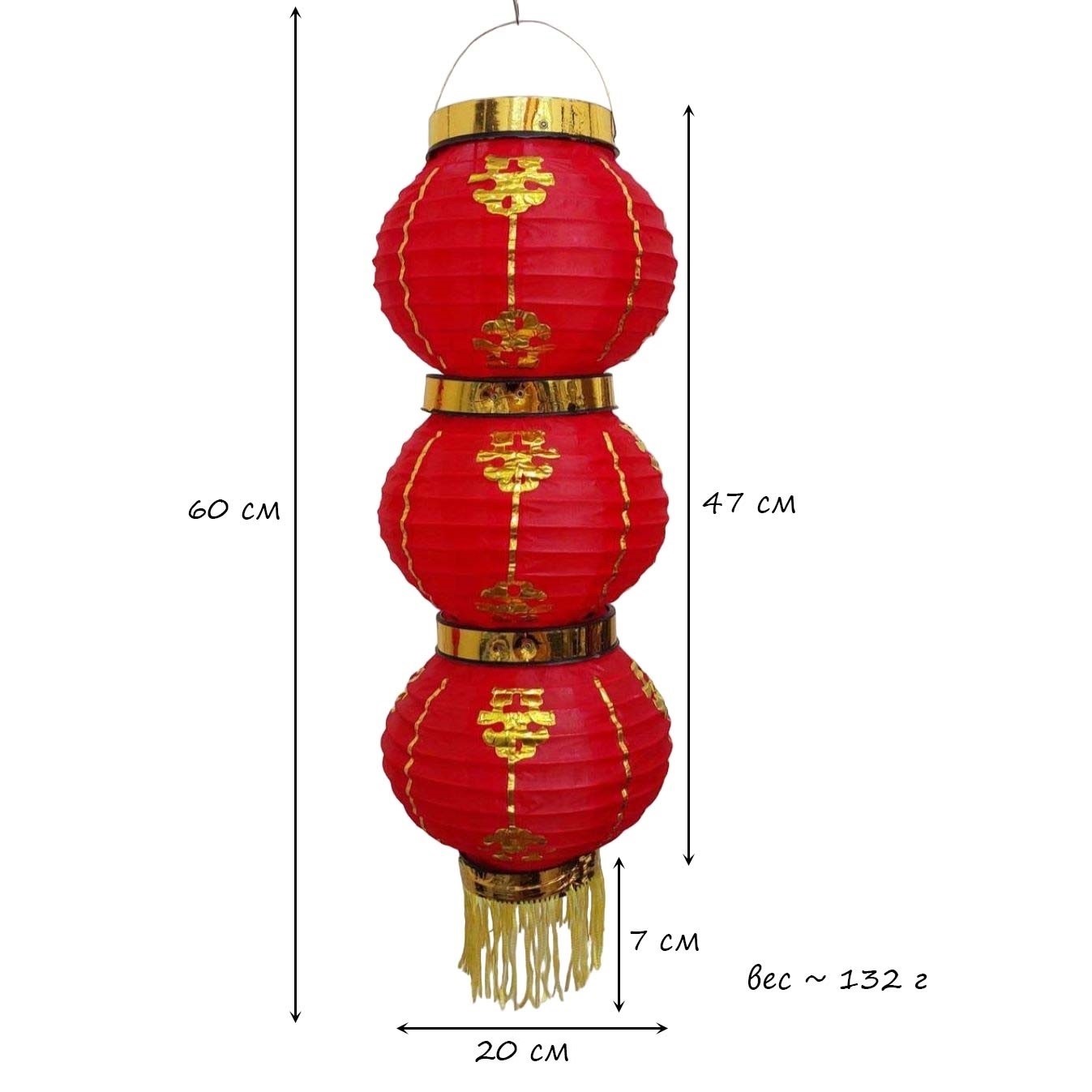 Китайский фонарь Круглый с рисунком, 3 яруса 20см