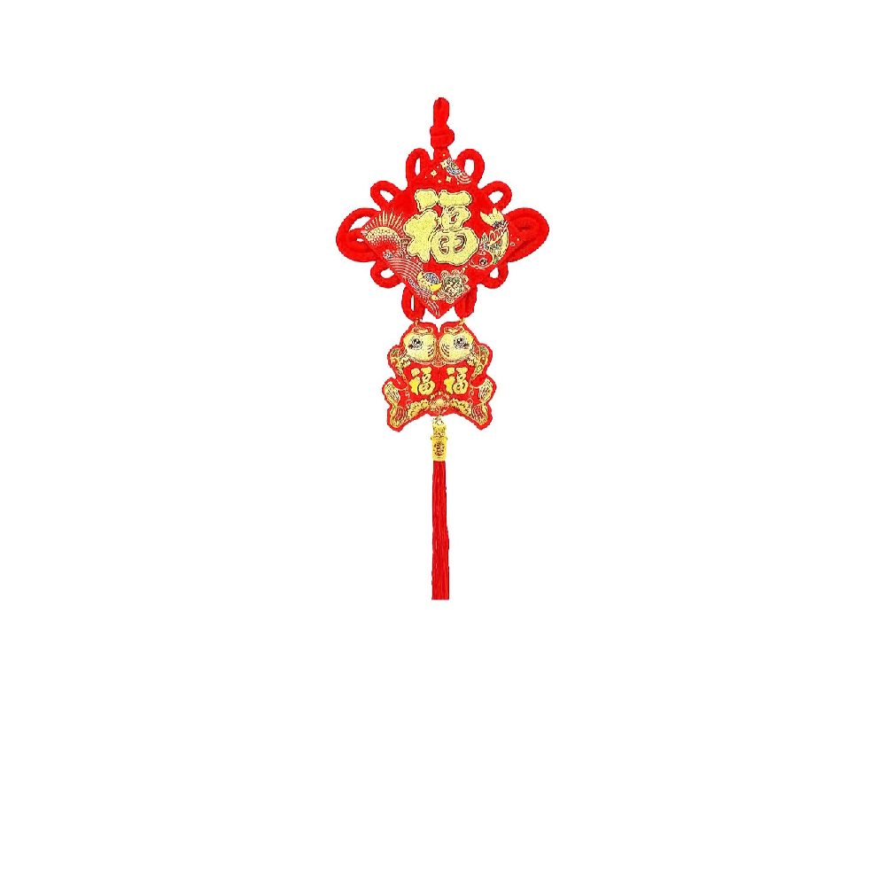 Традиционный китайский узел в форме ромба с символичным дизайном. Яркое сочетание красного бархата и золотых элементов создает эффектный акцент в интерьере.