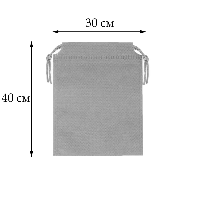 Мешочек из спанбонда, размеры 40х30см, со шнурками, подходит для многоразового использования.