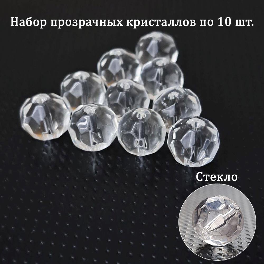 Набор прозрачных кристаллов "Граненый круг" 10 штук по 12 мм подойдет для творчества и оформления декора.