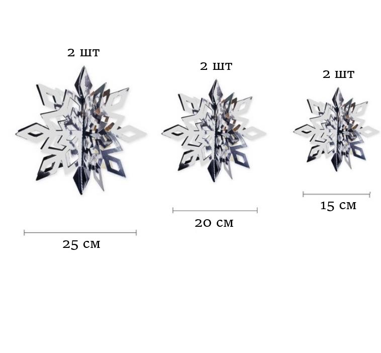Набор Снежинки 6 шт 15/20/25 см серебро перелив
