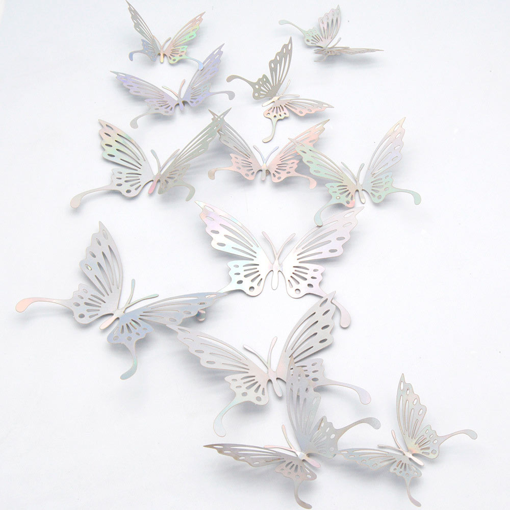 Наклейки Бабочки № 16 бумага металлик 12 шт серебро