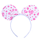Ободок ушки Минни белый с малиновыми сердечками
