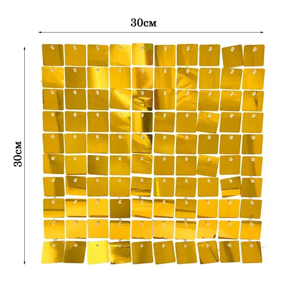 Панель с пайетками 30×30 см на гибкой пластиковой основе. Пластик прочный, хорошо гнётся и не ломается при сгибании. Пайетки переливаются при движении. Панель крепится к стенам, каркасам или соединяется с другими такими же панелями.