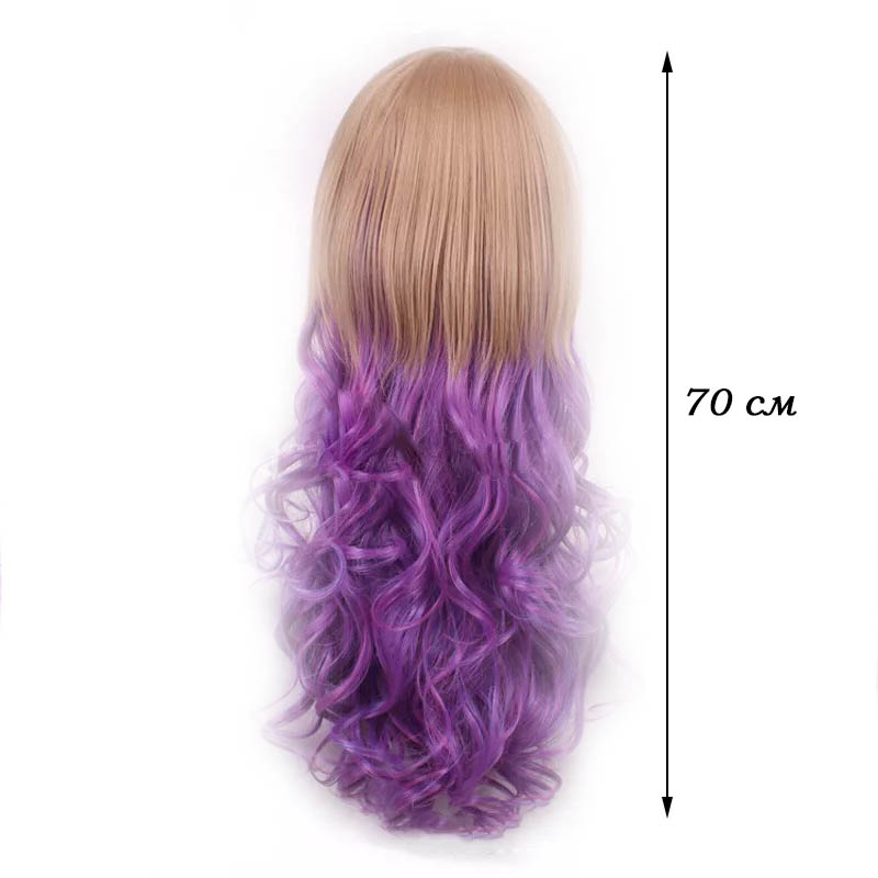 Парик радужный длинный изготовлен из современного искусственного материала.