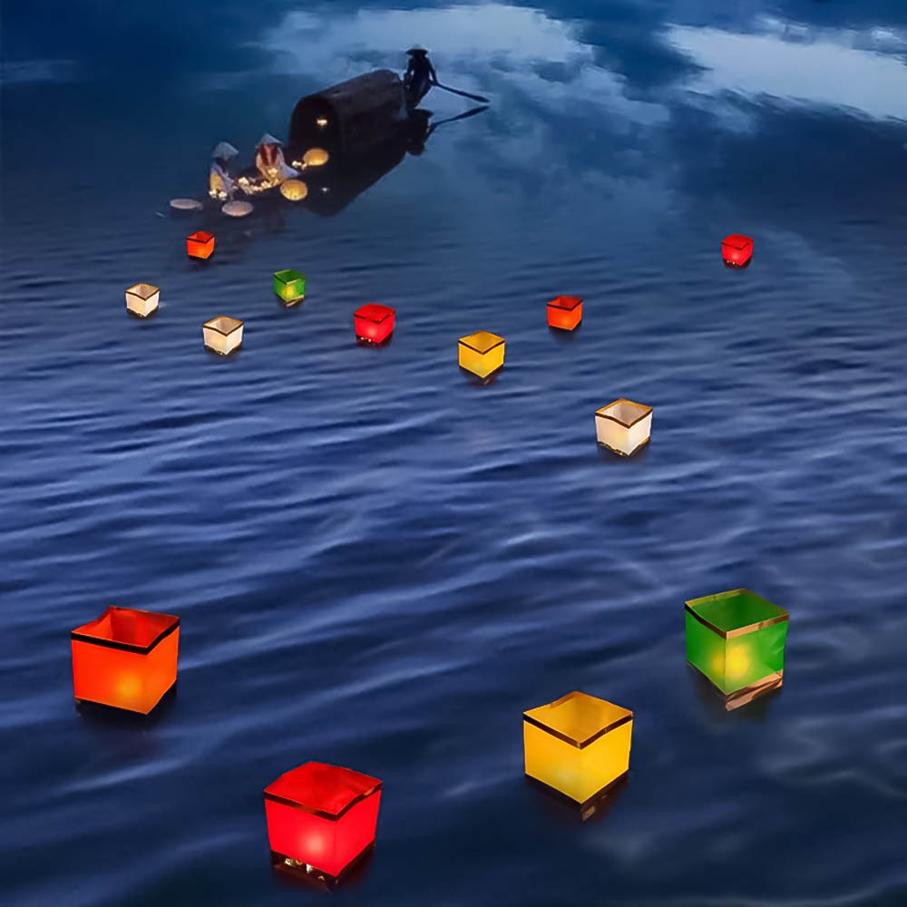 Плавающий фонарик "Куб" 15х15 см золото+желтый