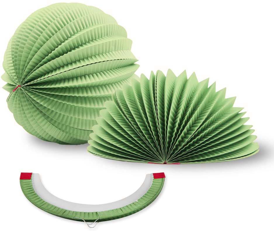 Шар — светло-зеленый, прекрасно сочетается с фонариками других расцветок.