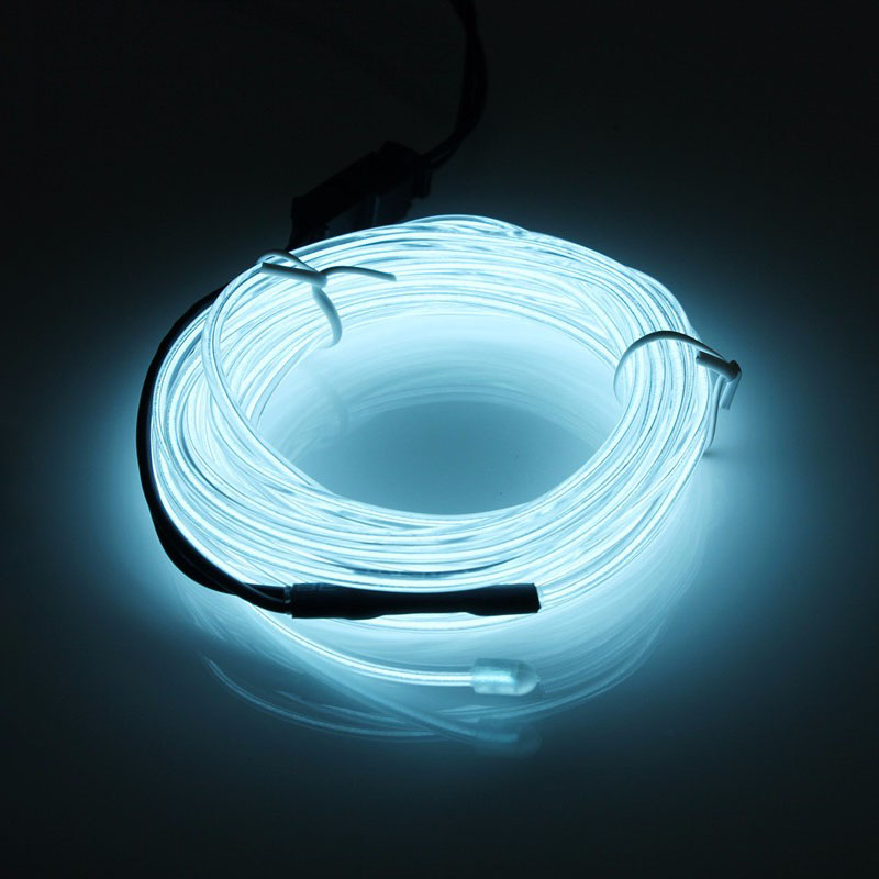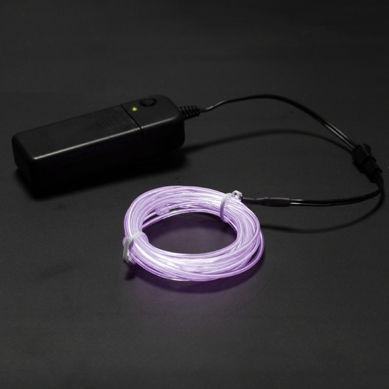 В комплекте с EL проводом, длинной 4 метра,  идет бокс с питанием от батареек, что позволяет его применять где угодно, даже на улице.  Работает от 2-х батареек 2АА (батареек в комплекте нет).