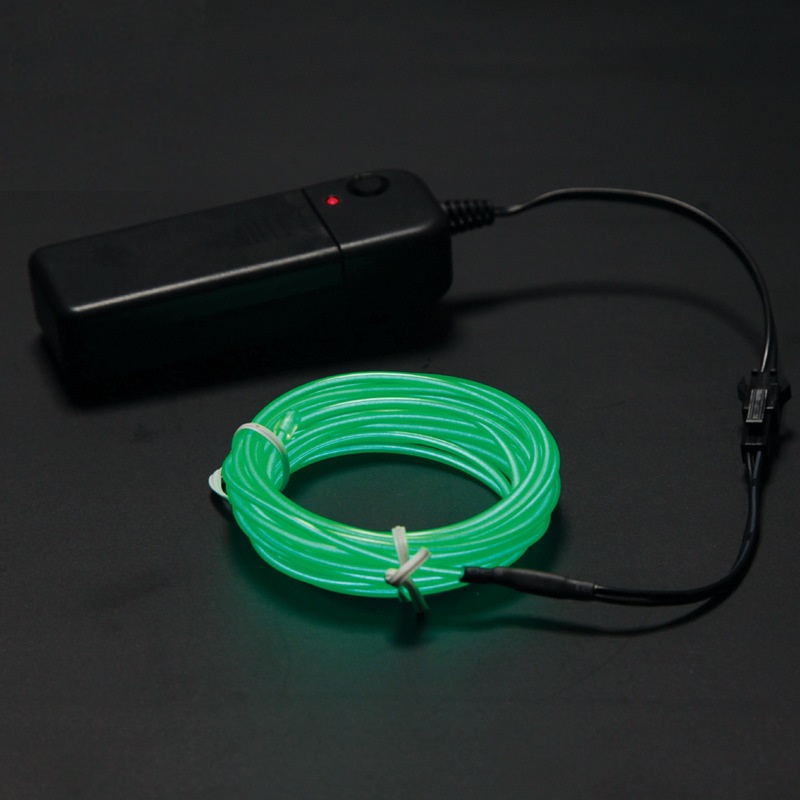 В комплекте с EL проводом, длинной 5 метра,  идет бокс с питанием от батареек, что позволяет его применять где угодно, даже на улице.  Работает от 2-х батареек 2АА (батареек в комплекте нет).