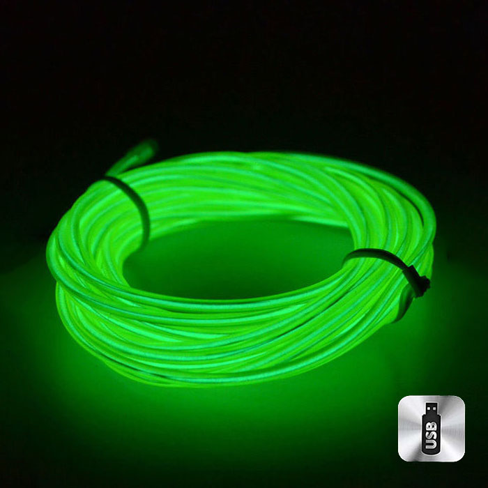 Шнур неоновый светящийся от USB 3 м, зеленый