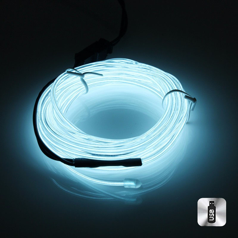 Шнур неоновый светящийся от USB 4 м, светло-розовый