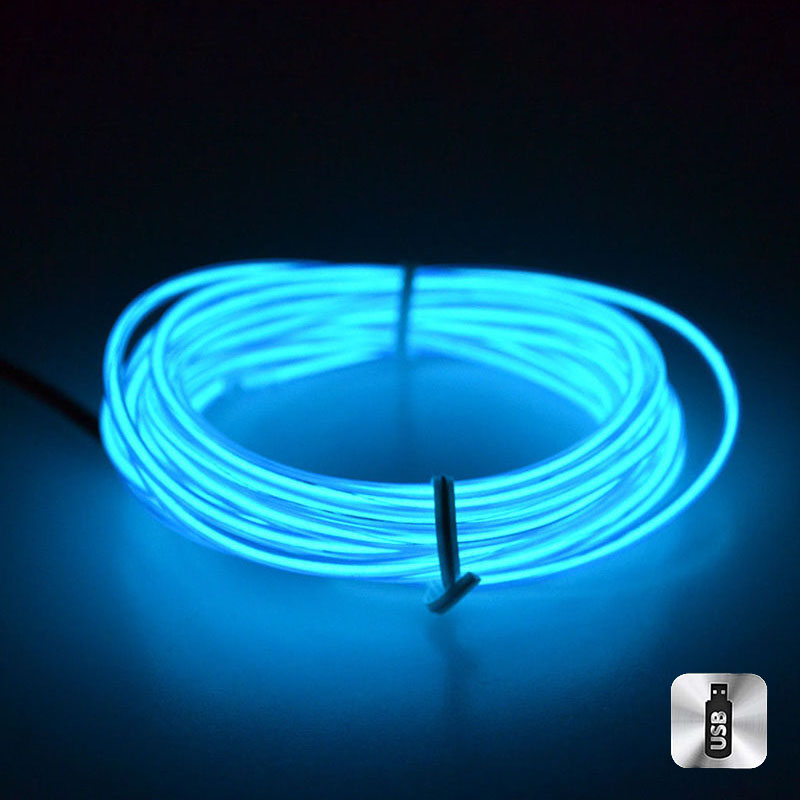 Шнур неоновый светящийся от USB 5 м, синий