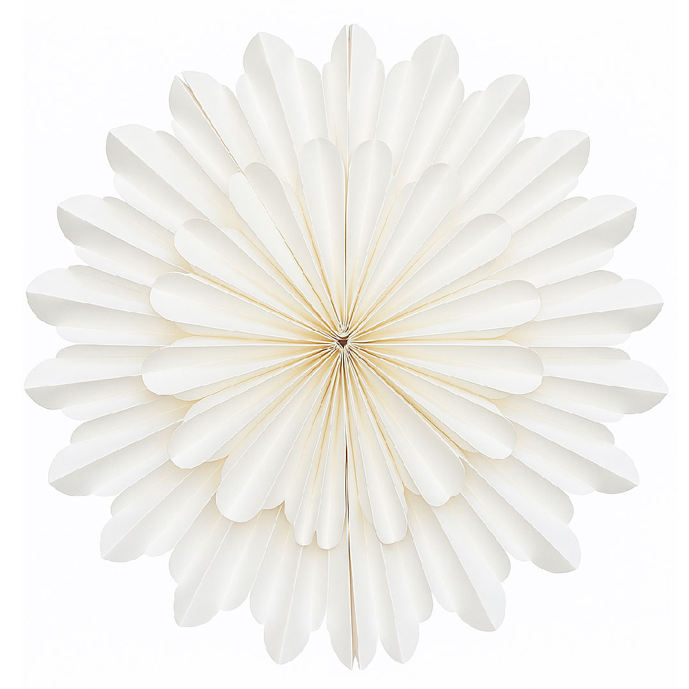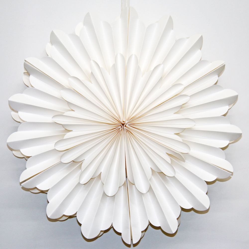 Элегантная объёмная снежинка из плотной бумаги станет стильным украшением зимнего интерьера. Нежный белый цвет придаёт оформлению лёгкость и ощущение снежной свежести, а ажурный узор делает декор утончённым и нарядным.