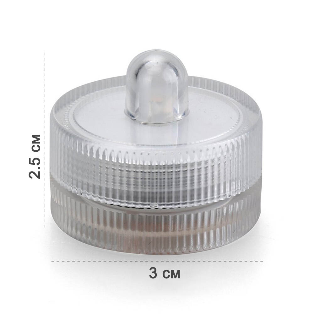 Светодиодная свеча-таблетка (3х2,5 см) водонепроницаемая.