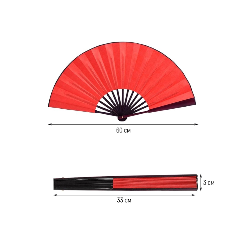 Двухсторонний складной веер для танца. Выполнен из бамбука и плотной ткани.