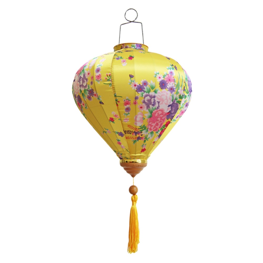 Это традиционные подвесные фонарики ручной работы, изготовленные из шелкового материала с элегантным цветочным узором, которые делают его изысканным и красивым.