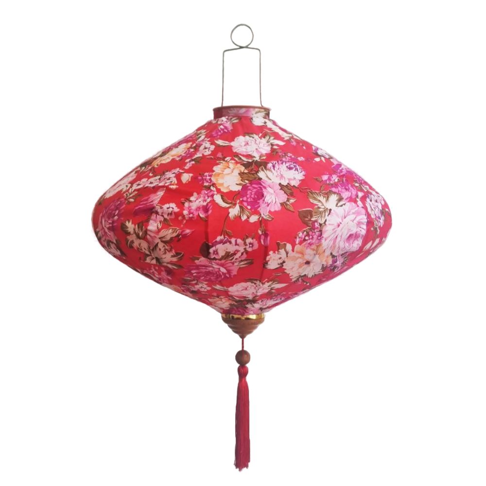 Это традиционные подвесные фонарики ручной работы, изготовленные из шелкового материала с элегантным цветочным узором, которые делают его изысканным и красивым.