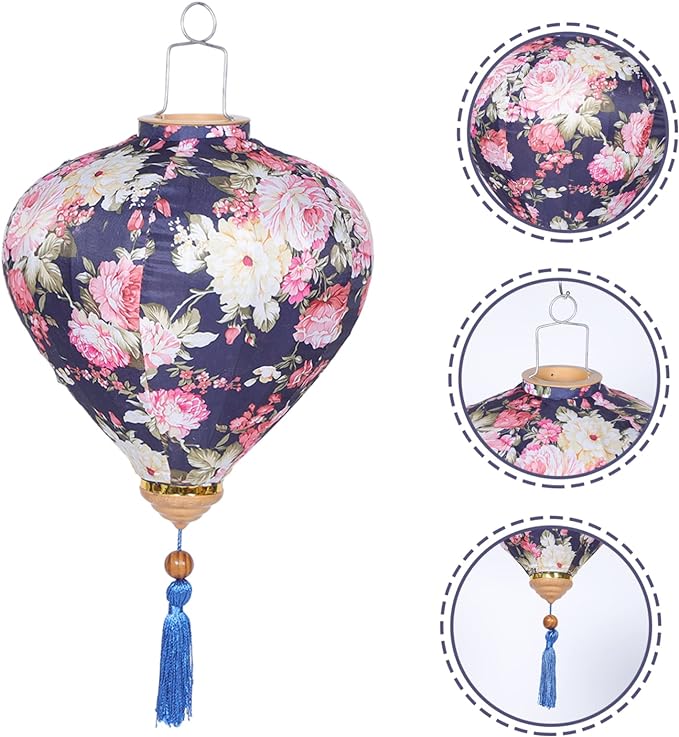 Это традиционные подвесные фонарики ручной работы, изготовленные из шелкового материала с элегантным цветочным узором, которые делают его изысканным и красивым.