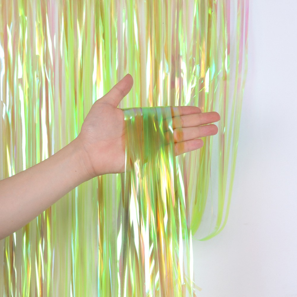 Занавес дождик 1 х 2 м,прозрачный с голографией, Зеленый
