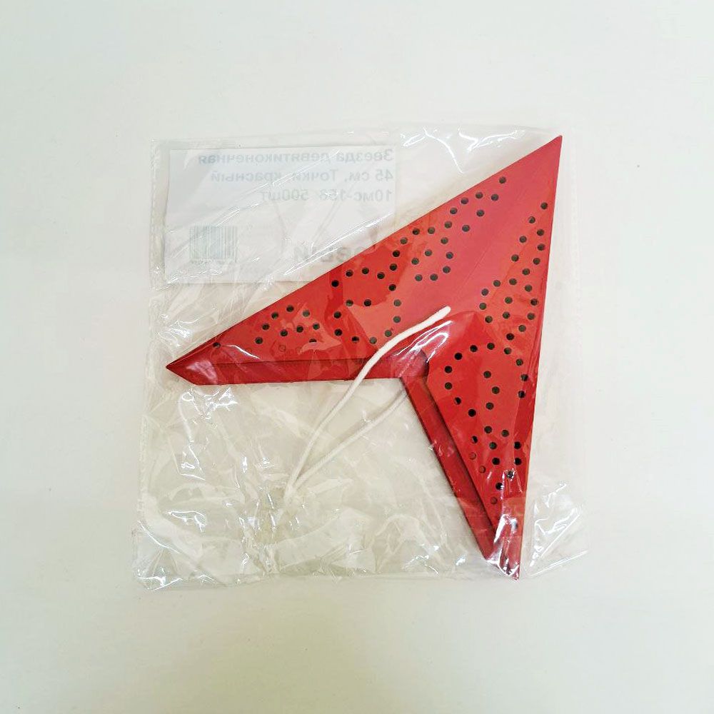 Звезда девятиконечная диаметром 45 см, изготовлена из  картона с перфорацией в виде точек.